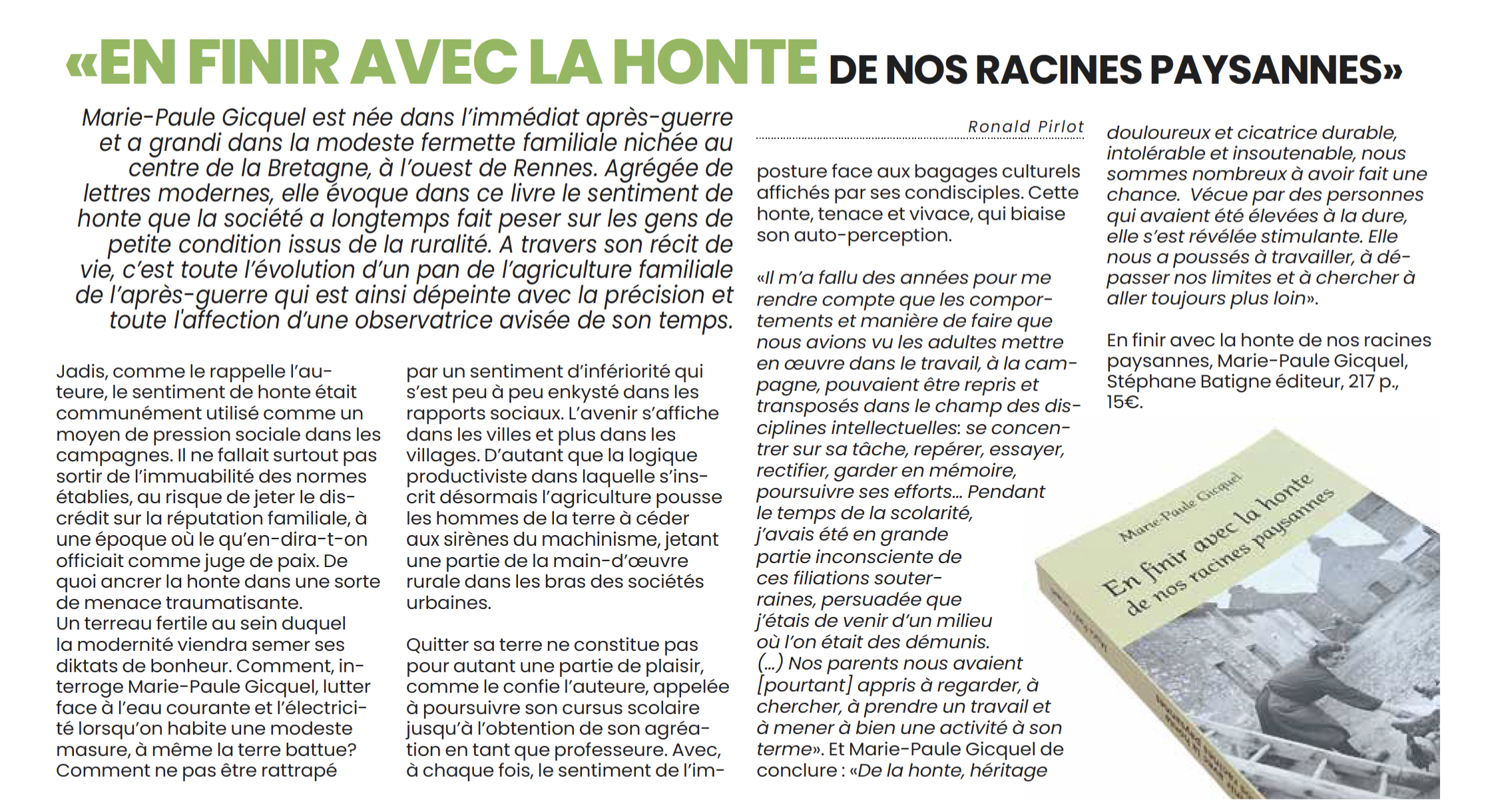 à propos de En finir avec la honte de nos racines paysannes, de Marie-Paule Gicquel